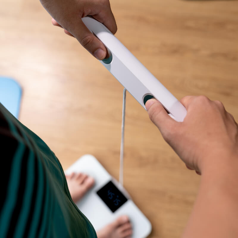 - Cấu tạo 8 điểm điện cực đo chỉ số toàn diện.