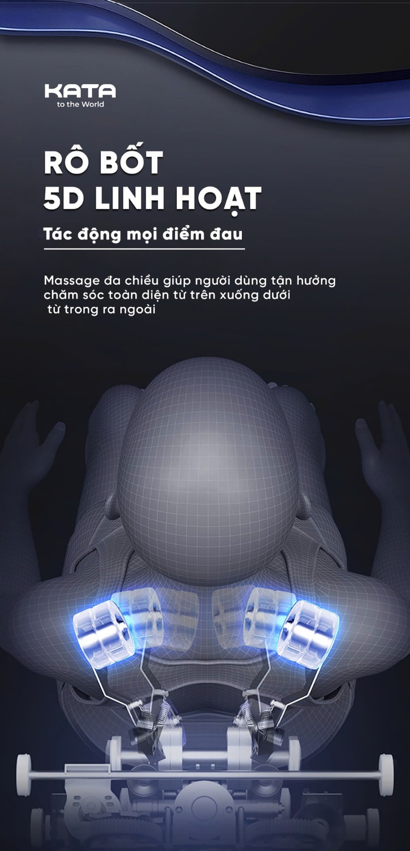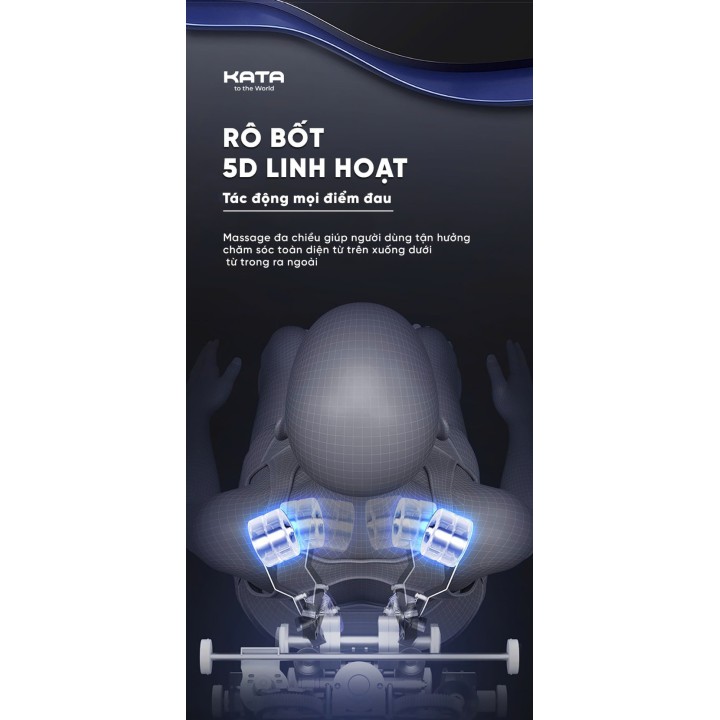 Một trong những điểm nổi bật của KATA MC01 là hệ thống con lăn 5D thế hệ mới, mô phỏng chân thực từng thao tác của chuyên viên massage chuyên nghiệp.
