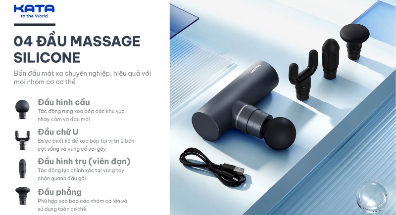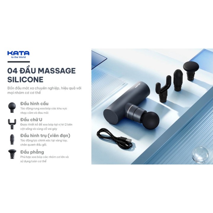 Trong nhịp sống bận rộn hiện nay, việc chăm sóc và phục hồi cơ thể là vô cùng quan trọng. Một thiết bị nhỏ gọn nhưng hiệu quả như súng massage KATA MG30 là giải pháp rất hiệu quả. Sản phẩm này sở hữu thiết kế tinh tế, 4 đầu massage chuyên dụng, 5 chế độ rung linh hoạt, cùng pin 2000mAh mạnh mẽ, mang lại sự thoải mái, thư giãn và chăm sóc cơ thể toàn diện mỗi ngày.