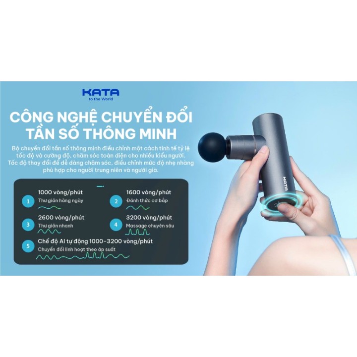 KATA giới thiệu súng massage KATA MG30 giúp thư giãn, giảm đau mỏi và tái tạo năng lượng cơ thể mỗi ngày. Sản phẩm được nghiên cứu và phát triển bởi KATA, mang lại trải nghiệm tốt nhất cho khách hàng. Bài viết này sẽ giúp bạn có thêm thông tin chi tiết về tính năng cũng như công dụng của sản phẩm.